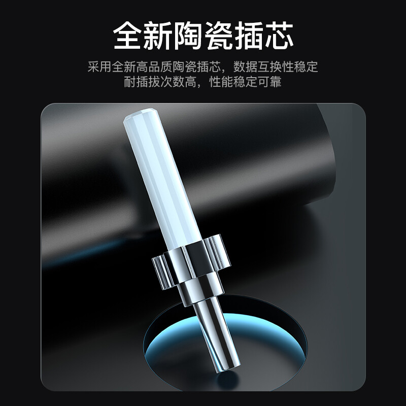 一体工艺,长线尾保护,坚固耐用不断裂;采用全新高品质陶瓷插芯,数据互换性稳定